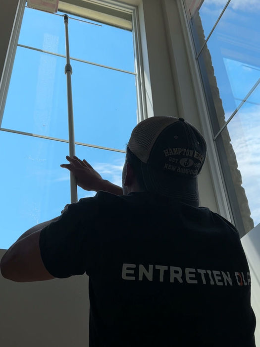 Nettoyage de vitres avec l'eau purifié et la perche extensible allant jusqu'au 5ème étage.